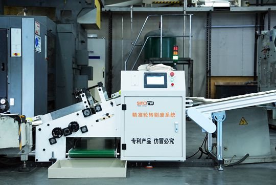 通过安装翻板踢废机构或者其他剔除机构存在无法精准做1张剔除的问题,一次剔废动作至少要剔除3张产品,进而导致剔废的同时也将好品进行了附带剔除,导致材料成倍的浪费。以上两种废品剔除的方式均不理想,轮转在线检测精准剔废系统旨在解决卷筒纸印刷机在线检测的书贴自动踢废,而且精准做到1张的废品剔除,有效解决以往在线检测只是“发现印刷废品”,而无法“100%剔除废品”的行业难题。